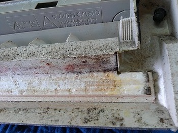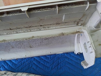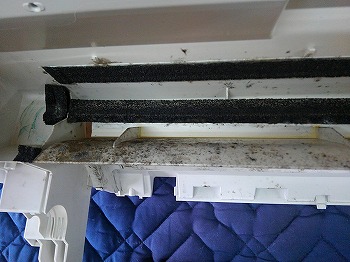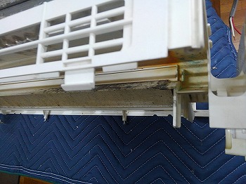 他社が1年前にクリーニングしたパナソニック製エアコンの汚れ残りから繁殖したカビ