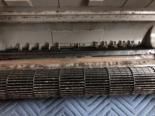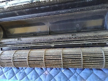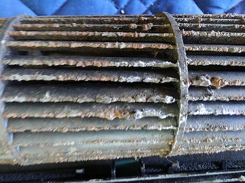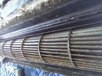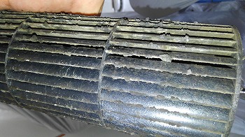 エアコンのファンは、シロッコファンやクロスフローファンとも呼ばれ、エアコン掃除においてファンの汚れはあなどれません。