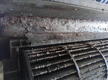 他社が2年前にクリーニングしたダイキン製エアコンの汚れ残りから繁殖したカビ。