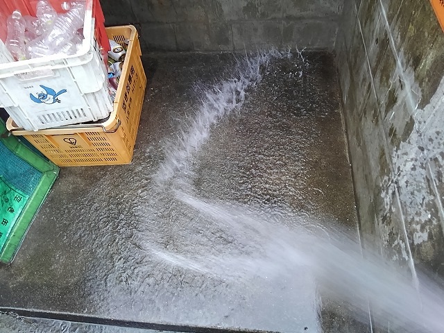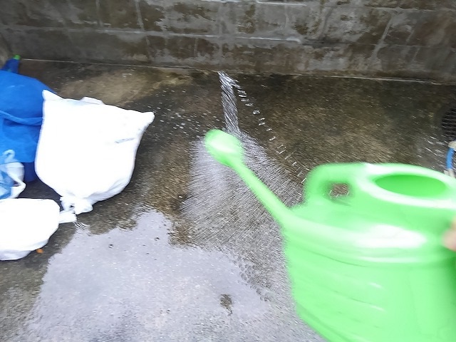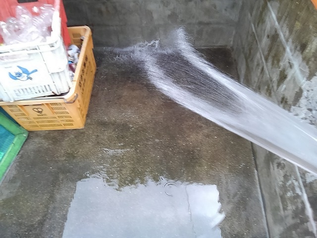 水洗いの仕上げは、かっぱぎ作業で水気を排水へ流します。