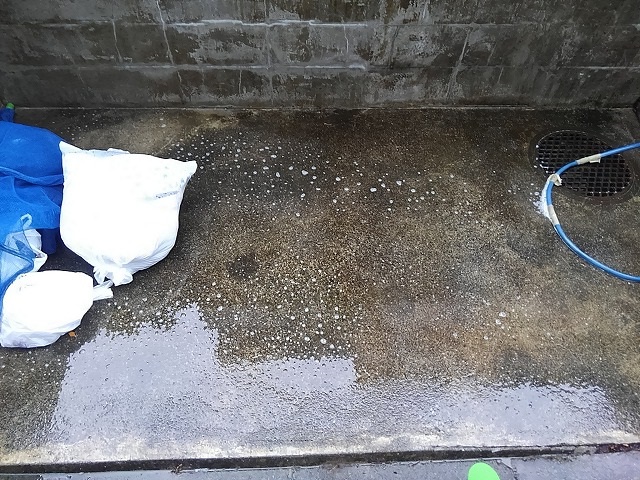 広い場合にはポリッシャーを使用する場合もありますが、基本的にはデッキブラシやハンドブラシで仕上げて作業料金にご負担が無く、効果が見込める方法で作業しております。