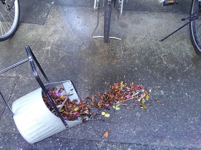月2回のアパート清掃ですと1物件でチリトリにいっぱいの落ち葉が入ります。