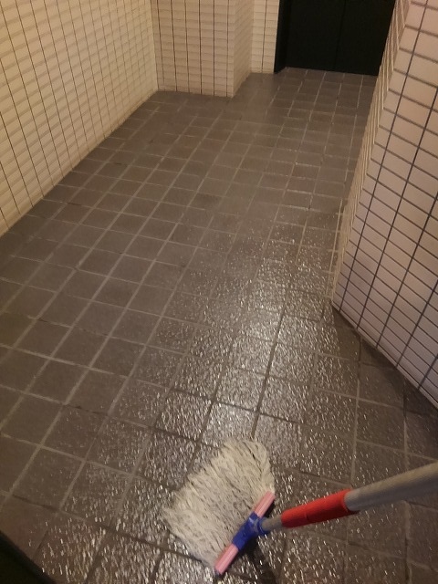基本的にはアパートの廊下部分でモップ拭き可能な箇所には毎回モップ拭きを行っております。