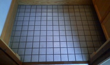 約15年間堆積した汚れを落とします。このように汚れてしまった玄関タイルも綺麗になりますので、玄関タイル洗浄の際はぜひ、ご検討くださいませ。