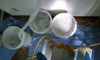 本日の汚水と、洗浄後によーく乾かされた部品です。