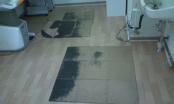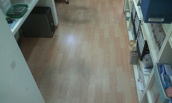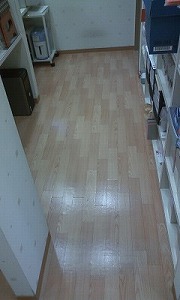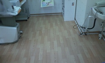防傷のために貼ってあったコルクタイル(一部)を除去とクリニック全体剥離床清掃です。