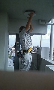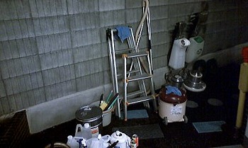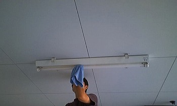 本日はどう進めていこうかと話していると、1階駐車場の照明が埃だらけなのに気が付きます。
