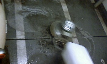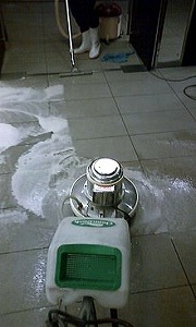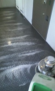 角を磨いてからポリッシャー洗浄していきます。12階から3階までこのように洗浄していきました。