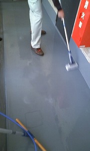 本日は、後輩の初ポリッシャー掛け。仕組みや作業方法をザックリと教えて、あとは経験を積むのみ。