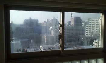 エアコンフィルタ・エアコンホコリ落とし・吊照明ホコリ落とし・腰窓2枠ガラスサッシとオプションコーティング・ベランダ2箇所と大ガラス2枠のコーティング・r窓2箇所・キッチンラグマットの洗濯3枚・フロアすべてのワックス2層塗布 約60㎡・クロス壁と天井のカビ色素の除去の内容で進めていきました。