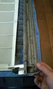 アルミフィンの結露を受けるドレインパンはカビ多数
