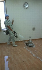 廊下も隅が手つかずのビルメン作業でしたが、執拗に4名のハウスクリーナーは隅を攻め続けていきます