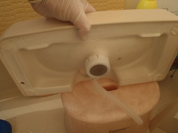 便座のフタを外してお風呂をお借りして洗浄していきます