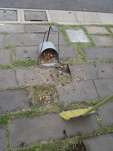 側溝の目皿付近にいつもたまる落ち葉拾い上げます