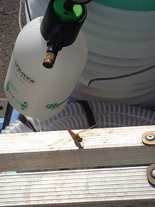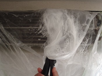 裏側から手前に撃ち抜く(アルミフィンの裏面を洗浄)しゃくり洗浄中です