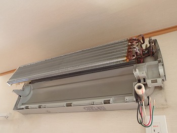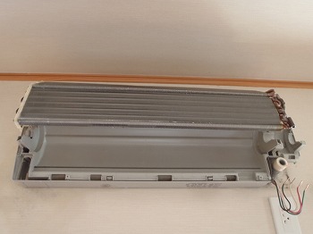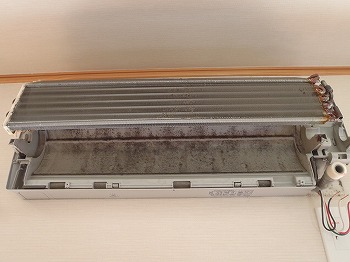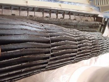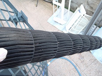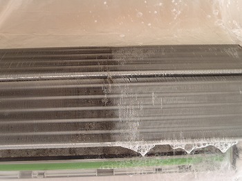 アルミフィンの裏側から手前方向に高圧洗浄をしていく「しゃくり洗浄」