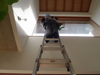 吹き抜けのガラスも磨いていきました(^^)