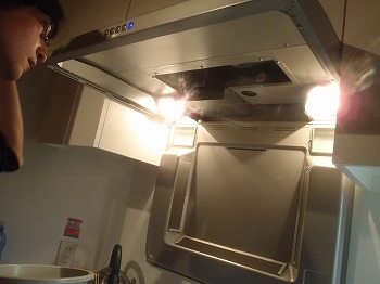 最初から手がけられなかったので、高瀬さんにシンクはお任せして、換気扇の清掃を行いました