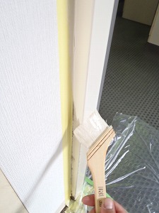 浴室乾燥機の交換・網戸の張替・建具の調整・エッジテープのボンド圧着・玄関扉枠部・窓枠・浴室扉枠部のペンキ塗装・水栓パッキン交換などを行っていきました。