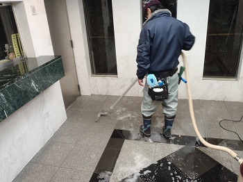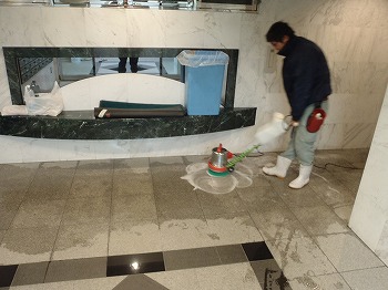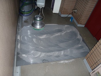 エントランスの床清掃作業の様子です