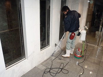 エントランスの清掃作業の様子です