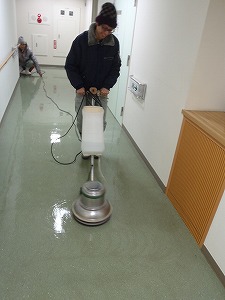 1年ぶりの作業で床もほどほどに汚れておりましたため、剥離よりの洗浄でワックスを除去していきました。