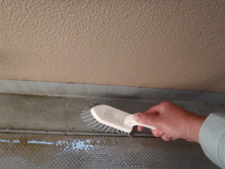 かなりの期間堆積した砂ホコリ・腰壁汚れ・床の汚れ