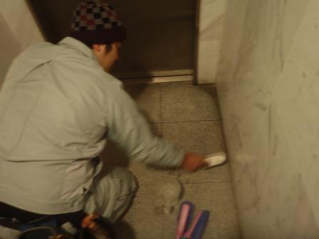 風除室とエントランスの仕切り(作業中) 汚れの差 その3