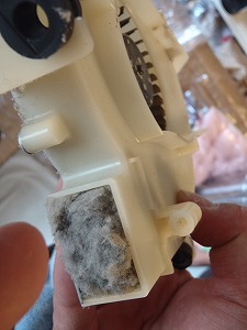 お掃除機能の要のホコリを出すブロアもゴミだしドレインもホコリが詰まっておりました