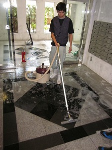 本日は、新宿区でマンション共用部分の特別清掃と定期清掃です。