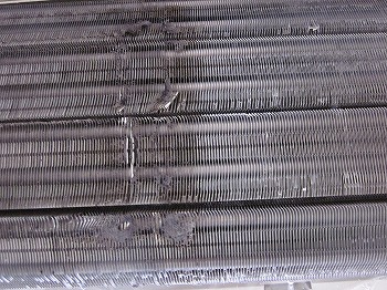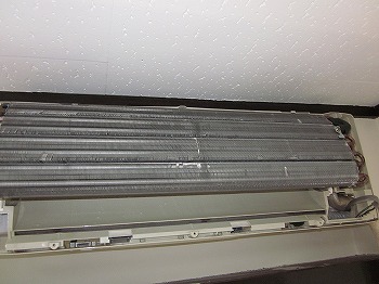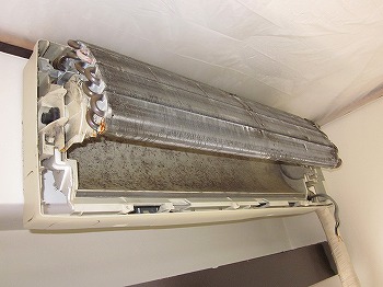 完全分解後のエアコン 洗浄前 正面から