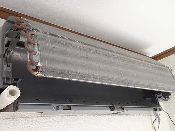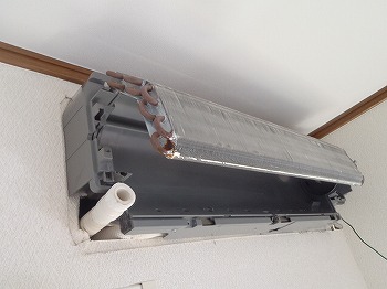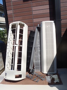 室外機の作業方法をタチに教えながら分解して、あとはタチに任せて、自分は室内機に集中いたします。