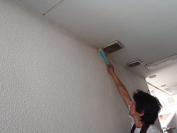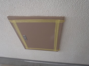 排気口の下に弱電版がありますので、水が入る事故予防のため養生をしていきます。