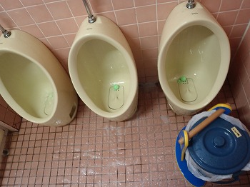 子供たちの声が聞こえる中でトイレ掃除(笑)