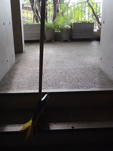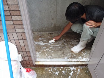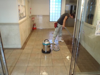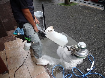 エントランス洗浄中