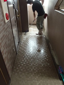廊下隅こすり中
