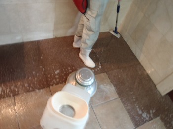 階段洗浄中