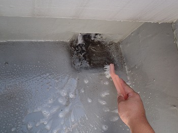排水口作業中・ポリッシャー掛け中です