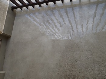 4F専有部分の北側の壁の雨だれの除去を行いました