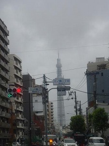 曇天のスカイツリーに挨拶をしてから作業をはじめます