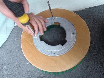 12インチ高速ポリッシャーと12インチ普通速ポリッシャーで攻めていきますが、ブラシを新品で作業していきます