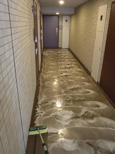 廊下洗浄中の様子