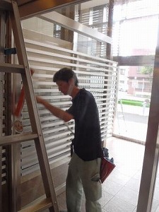 内側ガラス 拭き掃除中です