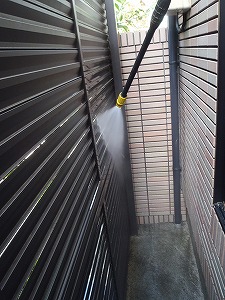 1Fの外・内側のガラス、網戸、簡単ですがサッシ清掃も含む・犬走り高圧洗浄・2Fの一部はめ殺し又はR窓の外側拭きと一部網戸の清掃・