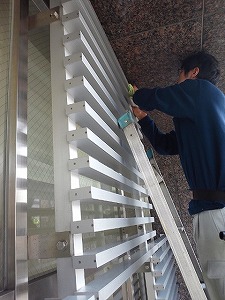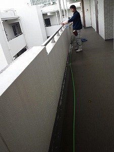 作業内容・・・エントランス高所ガラス(道路側のみ)、鳩糞被害の腰壁の洗浄11階分