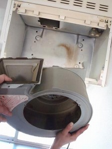 新人の溝江が作業した量、1日で換気扇のフードとフィルタとファンの換気扇部品のみ。