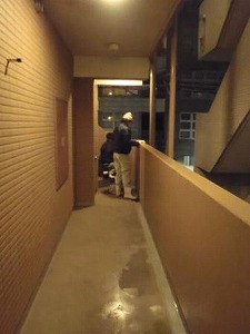 作業内容・・・8階から1階までの床洗浄・共用部分に接する扉・メーター周りなどの拭き掃除