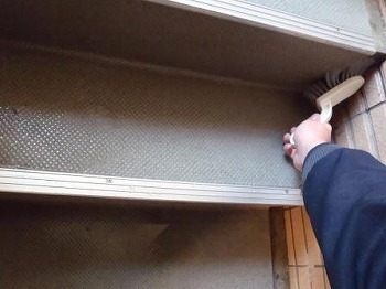 住んでいる方が滑らないように、念入りにかつ迅速に水分をバキュームしていきました。