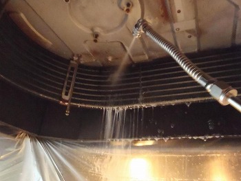 洗剤も高圧洗浄機でタップリ打ち込んでいき、隅々まで行渡らせます。