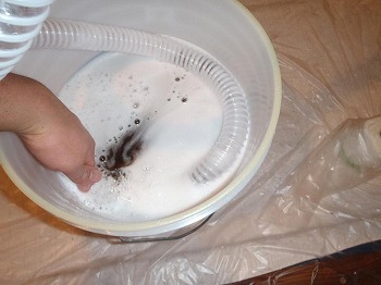 汚水は真っ黒で何杯かでたうちの一番汚いものです